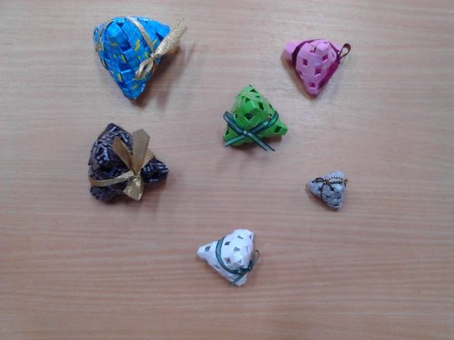 共有兩種模式的粽子,因為怕因裁剪會影響做的時間,所以挑了小的來做.
