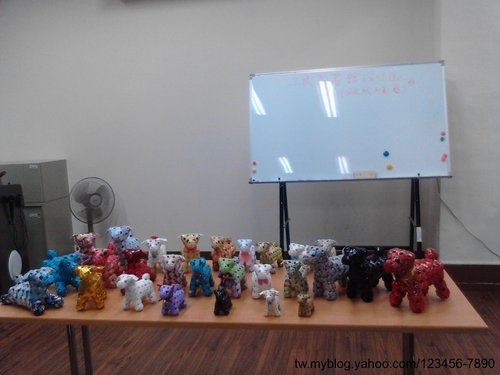 讓整個展示桌上呈現不同的喜悅,聽著同學談著他自己做狗狗的過程,都非常的開心.